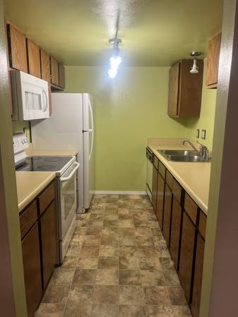 This wonderful condo is located in a great community on the west side of Fairbanks near University and main roads for easy access to the freeway. Quite building tucked in the trees with a large patio door that enters onto a private deck. 2 Bedrooms and 1 large bathroom, located on the ground floor. Unit is carpeted to keep your toes warm in the winter. Tenant pays electric. Heat, water, sewer and garbage included. Small storage unit across the street from unit. Washer and Dryer in unit. 1 Designated parking space. No smoking, no pets, no exceptions. This is a quite building with long time established tenants.
