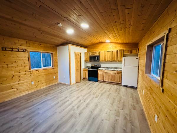 I have a dry cabin (no running water) available now. Are you ready to experience true Alaskan living? This charming DRY cabin, a cozy 20’ x 16’, is available for rent. It’s studio-style, meaning one big, open space where you can live your best minimalist life (and flex your creative furniture-arranging skills).