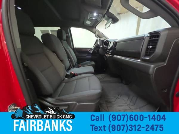 CONVENIENCE PACKAGE includes (KI4) 120-volt power outlet, (KC9) 120-volt bed-mounted power outlet, (UF2) Cargo bed LED lighting, (UBI) 2 charge-only USB ports for second row, (CJ2) dual-zone automatic climate control, (A2X) 10-way power driver seat including power lumbar, (N37) manual tilt/telescoping steering column, (T3U) LED fog lamps, ASSIST STEPS, CHROMED, 6 RECTANGULAR (factory installed), REMOTE START PACKAGE includes (BTV) Remote Start, (UTJ) Theft Deterrent System and (C49) rear-window defogger, HEAT PACKAGE includes (KA1) Heated driver and passenger seats and (KI3) Heated steering wheel, LPO, ALL-WEATHER FLOOR LINERS 1st and 2nd rows on Crew Cab and Double Cab, (includes Chevrolet Bowtie logo on front mats), AUDIO SYSTEM, CHEVROLET INFOTAINMENT 3 PREMIUM SYSTEM with Google built-in compatibility (select service plan required, terms and limitations apply) including navigation capability, 13.4 diagonal HD color touchscreen, includes multi-touch display, AM/FM stereo, Bluetooth?? streaming audio for music and most phones; featuring Wireless Apple CarPlay?? and Wireless Android Auto?? capability for compatible phones, advanced voice recognition, in-vehicle apps, personalized profiles for infotainment and vehicle settings (STD), ENGINE, 6.6L V8 with Direct Injection and Variable Valve Timing, gasoline, (401 hp [299 kW] @ 5200 rpm, 464 lb-ft of torque [629 N-m] @ 4000 rpm) (STD), TRANSMISSION, ALLISON 10-SPEED AUTOMATIC (STD). Chevrolet LT with RED HOT exterior and JET BLACK interior features a 8 Cylinder Engine with 401 HP at 5200 RPM*.