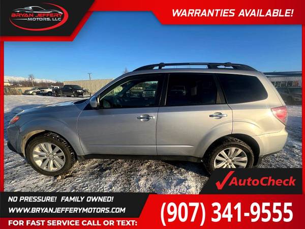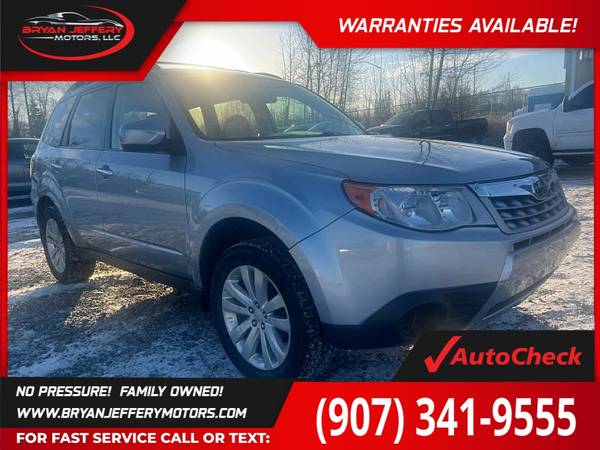 We are selling this 2013 Subaru Forester 2.5x Premium Sport Utility. It comes equipped with am/fm radio, power windows and locks, heated front seats, aftermarket autostart and much more! Autocheck shows that this vehicle has had 4 owners and a clean title! If you would like to schedule a time to see it give us a call or text at (907)-341-9555 to set up your appointment today! Or visit us at 4670 E Fattic Drive, Wasilla, AK 99654.