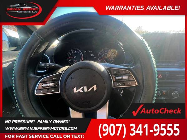 We are selling this 2022 Kia Forte LXS Sedan Front wheel drive. It comes with options such as back up camera, keyless entry, power windows and locks, lane departure warning and much more! Auto check shows that this vehicle has had 2 Owners, clean title and no damage reported. If you would like to come by and take it for a test drive, give us a call or text at (907)-341-9555 or visit us at our location 4670 E Fattic Drive, Wasilla, AK 99654!